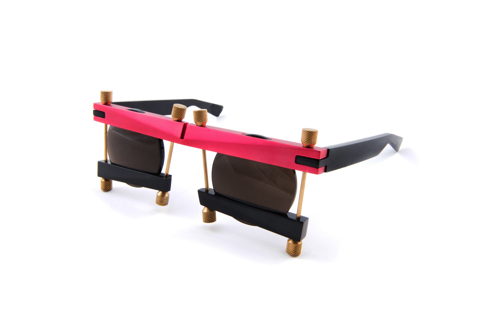 A mechanical, sum-of-its-parts design. Every component in Teneo serves a distinct function, with precision brass pins and bolts securing the lens firmly within the frame